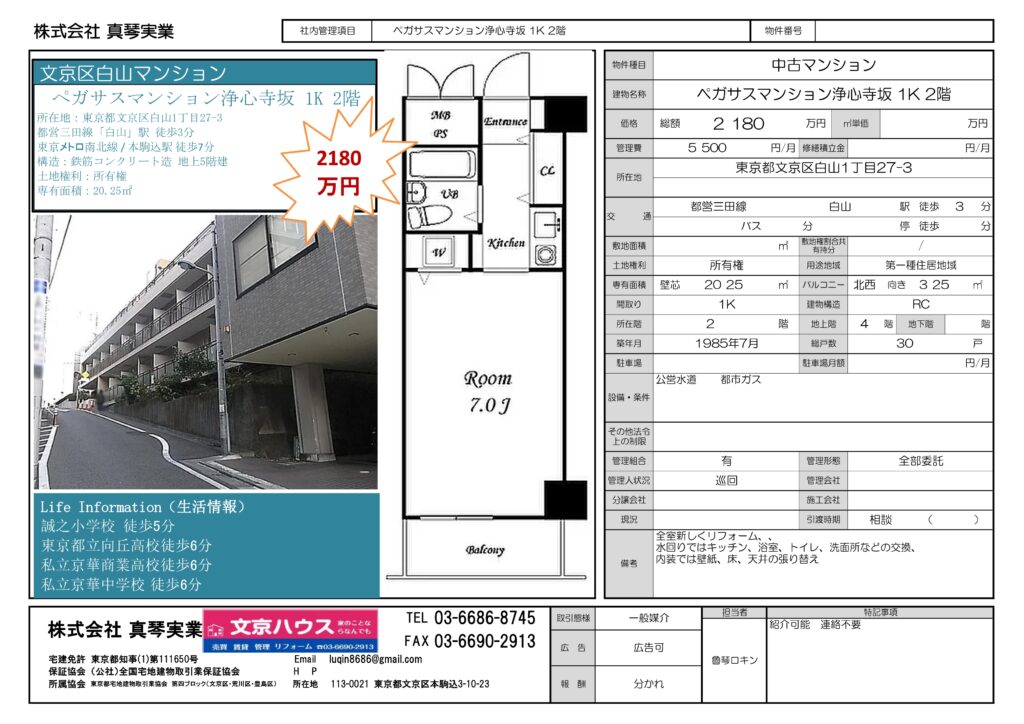 🏙 东京文京区 · 白山站3分钟!全新装修1K公寓